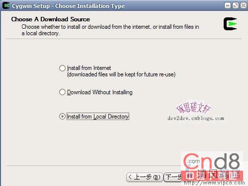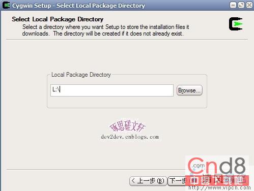 安装向导要求选择Cygwin安装文件所在的本地存储路径,可以在“Local Package Directory”中设置,点击“下一步”,如图5所示: