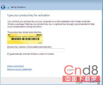 在安装Windows7时照例要输入序列号,不过它是在安装的最后阶段。此时,大家可以输入授权的序列号。当然,我们Windows7的安装程序也会提示用户此刻也可以不输入序列号,只要在系统正常运行的30天之内将序列号补进去也是可以的。