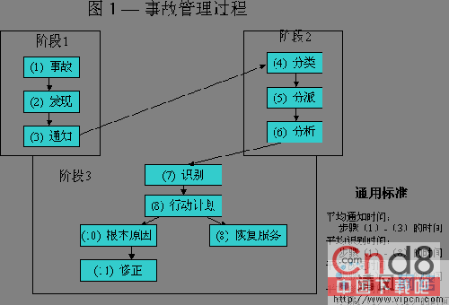 故障的识别,报告和转交:这个过程包括对警报进行识别,确认存在的问题,并确定在机构中如何将问题转交下去。最初的警报将转给运营或应用支持。公司不应该简单地给这些小组一个简单的通知单(即,单子上写着"假如A警报发生就通知治理员B");他们应该让这些小组使用初始的诊断工具以便更深入地识别问题,同时应该开始搜集信息,并将信息转交给能最终解决问题的小组。其他小组使用他们自己的工具(例如网络治理工具),应该时刻保证与应用和运营支持小组共同保证他们数据是同步一致的,同时避免为一个简单的故障安排过多的人手。META Group观察到很多这样的情形,多个人员响应同一个故障,每个人都使用他们自己工具中的数据,独立作战。他们不仅在重复劳动,浪费公司的时间,而且存在着干涉他人工作的风险,因此拖延了故障的时间。这就是为什么以对最终用户的影响为优先并从清楚的问题识别和故障转交为出发点的重要性原因。