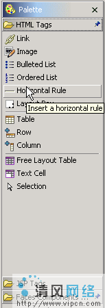 返回 Web 模板,把光标放在面板下,然后按【Enter】来添加一行。在 Palette 窗口,展开 Html Tags 部分,然后选择 Horizontal Rule(图 25)。