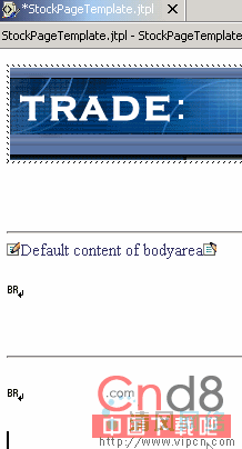 接下来,展开选项板中的 Page Template 部分,然后选择 Content Area(图 27)。当创建了一个 jsp 之后,内容区就变成 JSP 中可编辑的部分。每个模板至少需要一个内容区。对模板的任何修改都将影响到使用该模板的所有 JSP。把内容区拖到水平条的下面。