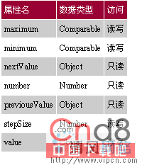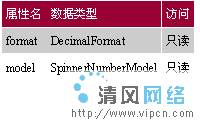 表格5展示了SpinnerNumberModel的属性:
