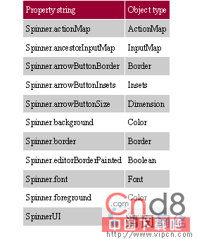 Table 2. JSpinner UIResource 元素