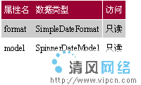 表格3列出了SpinnerModel中的三个属性,四个关于SpinnerDateModel。
