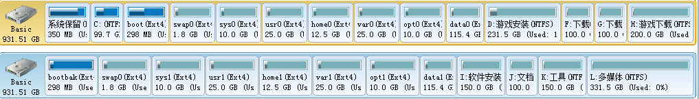 300M boot备份分区,主分区,备份一个boot分区,出现意外时可以使用这个分区引导