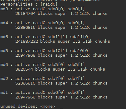使用 cat /proc/mdstat 来查看RAID分区的运行状态