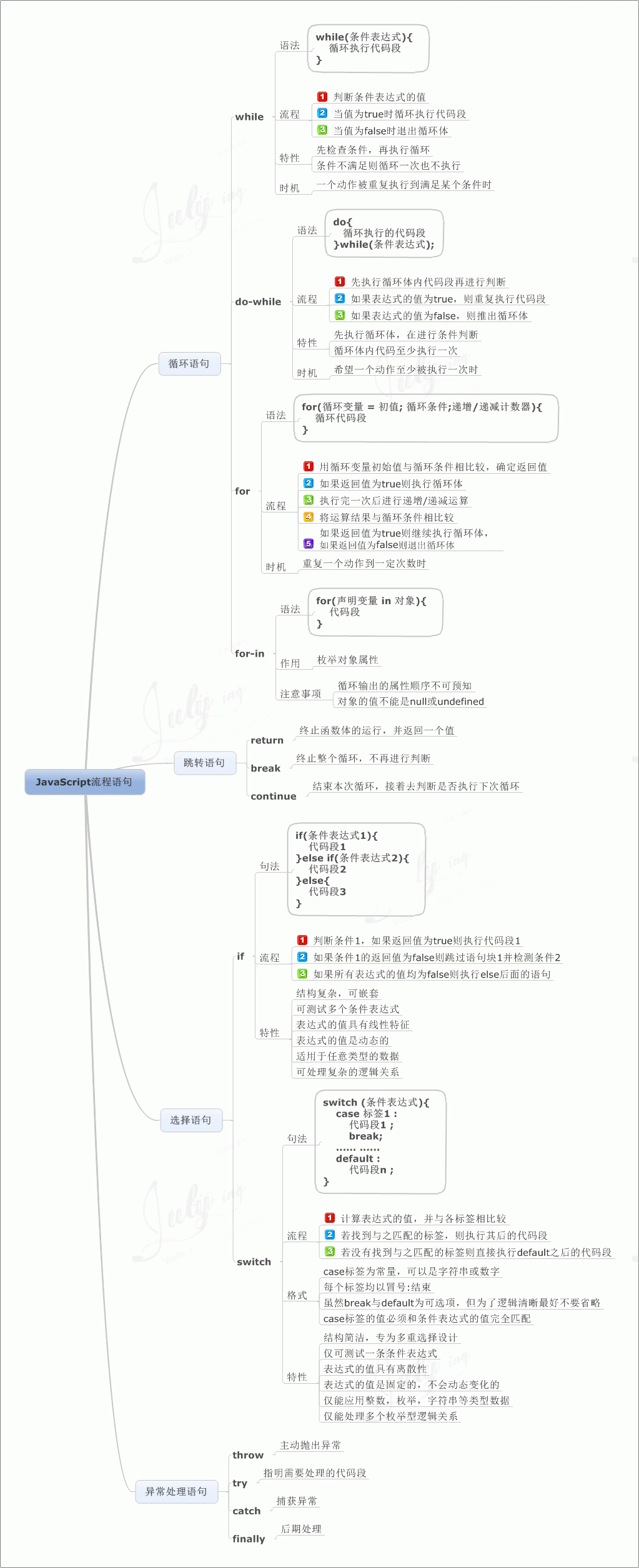 对于js流程控制语句,这里只讲几个比较难懂的。其他不赘述。等下附上一张思维导图。