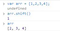 2.shift - 移除最前一个元素并返回该元素值,数组中元素自动前移。
