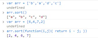 5.sort - 对数组元素排序,返回修改后的数组。当没有参数的时候会按字母表升序排序,也可以可以传一个排序方法进去。