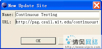 在Eclipse中安装Continuous Testing的方法非常简单,类似于安装其他的plugin的方法。首先我们启动Eclipse3.1,单击菜单项Help->Software Update->Find and Install。在弹出的向导对话框中,我们选择"Search New Features to Install",在弹出的对话框中点击"New Remote Site",如图1所示。在URL中输入 http://beust.com/eclipse,点击"OK"。如图 1所示,点击"Finish",Eclipse会帮助我们增加一个用于Update的站点。熟悉 Eclipse的读者对这个过程一定不会觉得生疏。