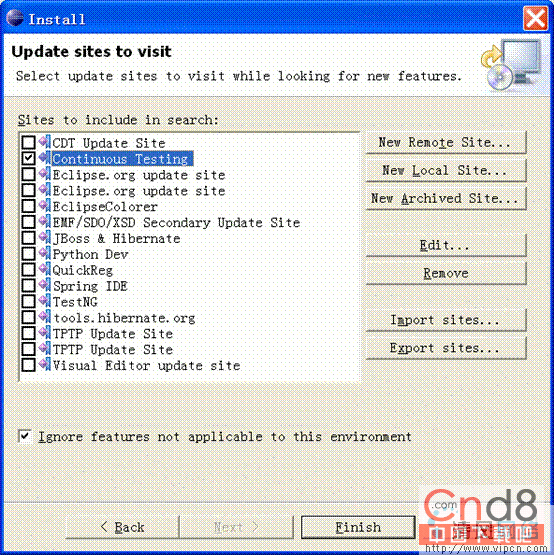 添加Update Site之后,在随后出现的Install对话框中选中刚刚添加的Update Site,并且按下Finish按钮,如图 2所示。经过后续的下载和确认之后,我们就安装好了Continuous Testing了。