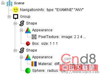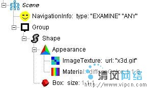 ImageTexture 是用来指定一个图像映射到一个几何形体的表面上。它与PixelTexture 节点的属性基本相同,只不过image属性被换成了url属性。