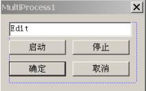 第二步:在对话框上建立两个按钮和一个编辑框,ID号分别为ID_START、ID_STOP和IDC_TIME,Caption分别为"启动"、"停止"。如下: