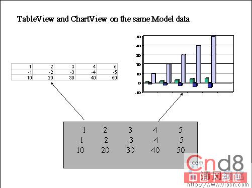 我们要实现一个清单显示样式的视图View1和一个图形方式显示的视图View2,并让它们实现Observer接口,以便当Model数据改变时,自动刷新自己.