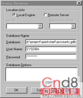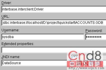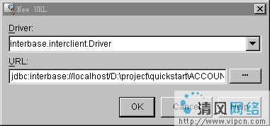 3、 选择"Driver"为:interbase.interclient.Driver;"URL"通过旁边的浏览按钮定位在我们刚才建立数据库的地方(D:projectquickstartaccounts.gdb)。如图19。