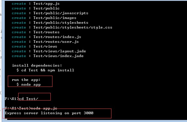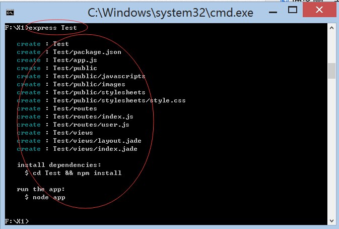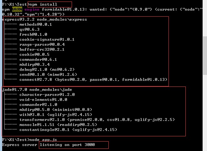 这样说明了需要2个库,一个是express,令一个是jade,那么我们现在来安装它,如果很多模块安装岂不是要执行很多次命令,这里有一个命令比较简便,它会检查当前的package.json的依赖库进行安装: