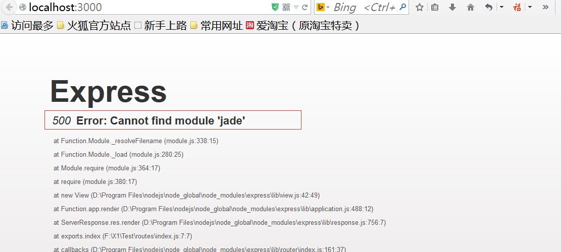 看到提示没,端口3000说明启动成功了,但是我们浏览器浏览报错,提示什么