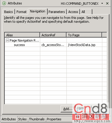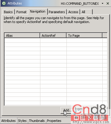 在依旧选中该按钮的前提下,切换到 Attribute 视图。选择 Navigation 选项卡,然后单击 Add 按钮。