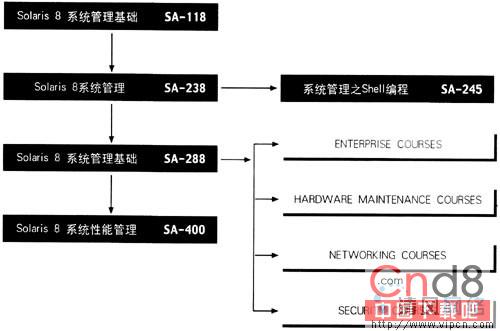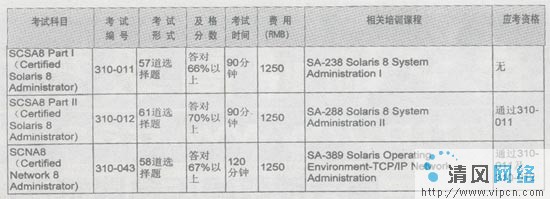 两种人可获Sun认证系统治理员资格:负责在Solaris 系统环境下执行基本系统治理步骤的系统治理员和负责在Solaris 系统环境中治理网络化服务器的软件技术支持者。他们分别应选读SA-118、SA-238以及SA-288课程,并完成Exam310-011和310-012的考试。对于前者来讲,SA-288课程的学习也是必须的。
