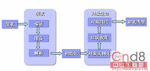 上图展示的是类生命周期流向;在本文里,我只打算谈谈类的"初始化"以及"对象实例化"两个阶段。