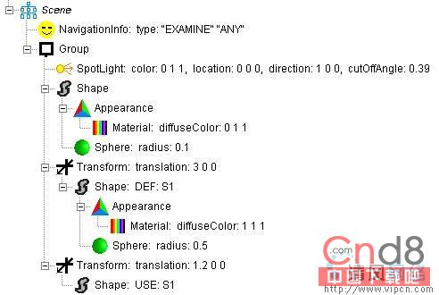 至此,我们对X3D场景的光源有了一定的了解,在下一讲中,我们将讨论纹理映射。