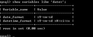 数据库管理员如果需要对服务器变量进行调整,首先需要对现有的变量以及相关值有所了解。用户可以通过使用命令show variables来查看系统中可用的变量以及默认值。不过系统的变量有200多个,查找起来比较麻烦。为此,用户可以通过使用like查询条件加上通配符来进行快速查找。如下图所示,笔者使用了’date%’,系统就会列出所有以date开头的变量名。这与SQL语句中的查询条件非常的类似。