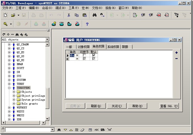 使用SysDBA系统用户登陆 PLSQL ,建立一个用户