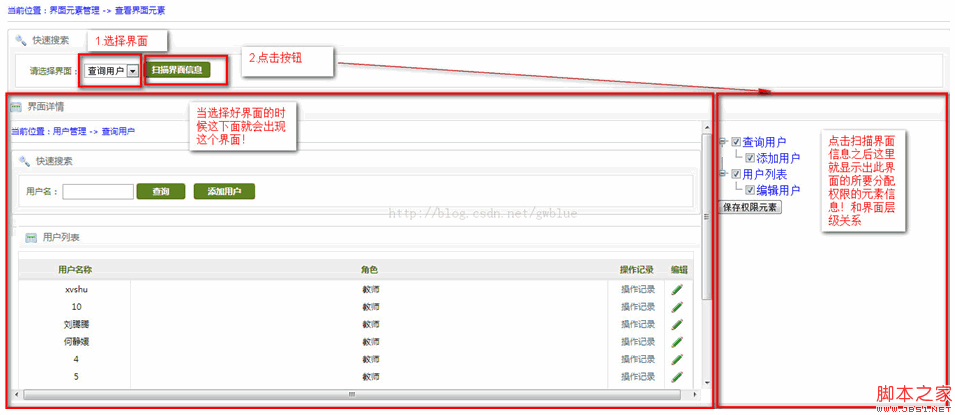 1.扫描界面把要分配权限的元素的信息获取出来存入到数据库中。