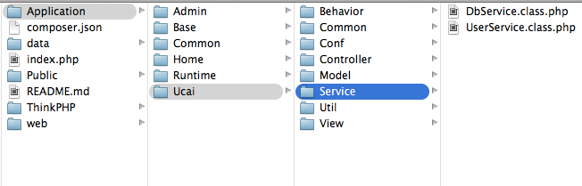 1、业务单独分层,不用放在Controller和Model里,例如我这里通过扩展函数库Application/Common/Common/function.php强制定义业务层名称为Service: