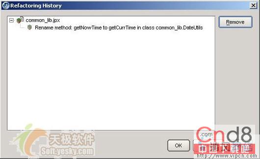 对话框中列出了当前工程所有重构历史记录,也许你不希望将所有的重构都分发出去,那么你可以通过Remove按钮删除那些重构记录。
