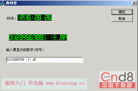 程序中的mytime类主要提供两个函数接口:一个是set()用来设置显示位置;一个是myfun()用来设置显示数字来显示。