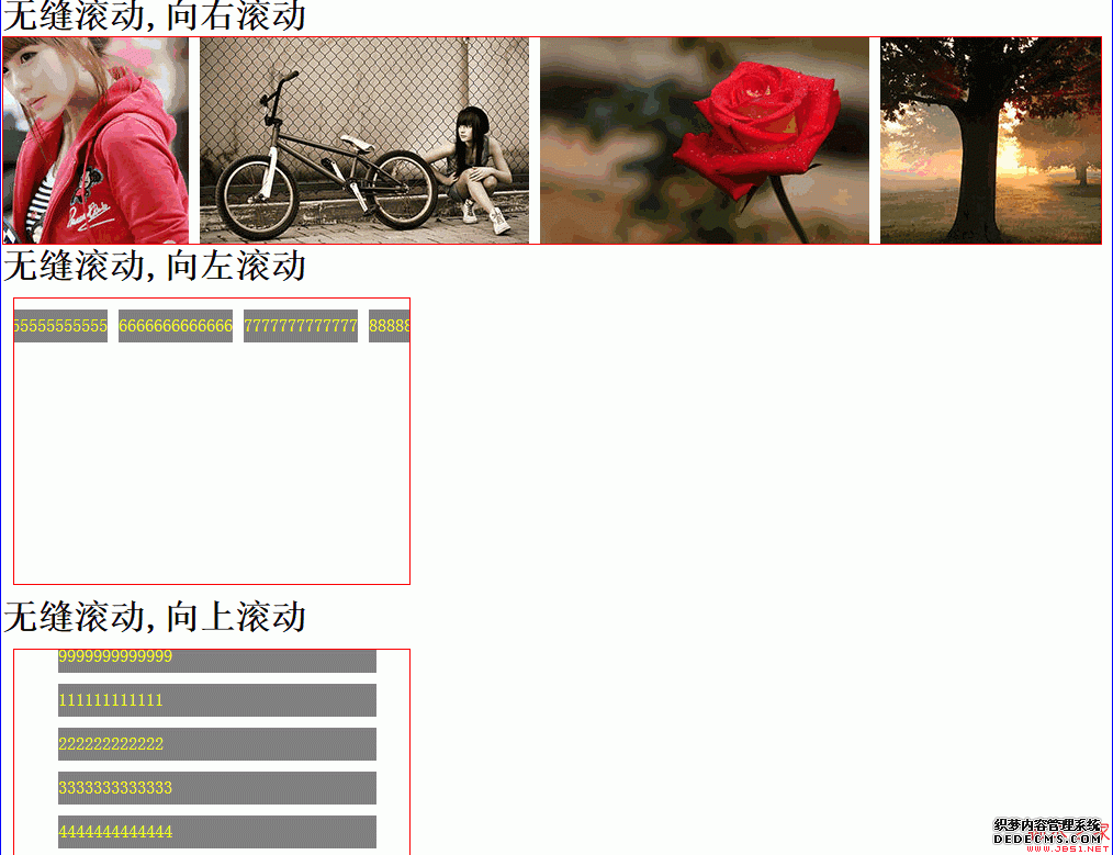 <h1>无缝滚动,向右滚动</h1>