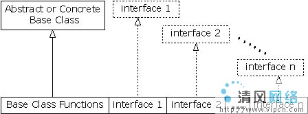 接口只是比抽象类“更纯”的一种形式。它的用途并不止那些。由于接口根本没有具体的实施细节――也就是说,没有与存储空间与“接口”关联在一起――所以没有任何办法可以防止多个接口合并到一起。这一点是至关重要的,因为我们经常都需要表达这样一个意思:“x从属于a,也从属于b,也从属于c”。在C++中,将多个类合并到一起的行动称作“多重继续”,而且操作较为不便,因为每个类都可能有一套自己的实施细节。在Java中,我们可采取同样的行动,但只有其中一个类拥有具体的实施细节。所以在合并多个接口的时候,C++的问题不会在Java中重演。如下所示: