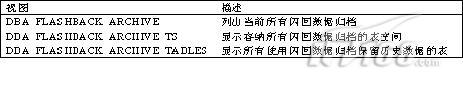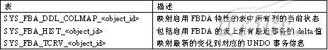 FBDA元数据:Oracle 11gR1提供了几个关于FBDA元数据的数据字典视图,包括哪个表空间支持可扩展的历史数据存储,以及FBDA中保留了哪个表: