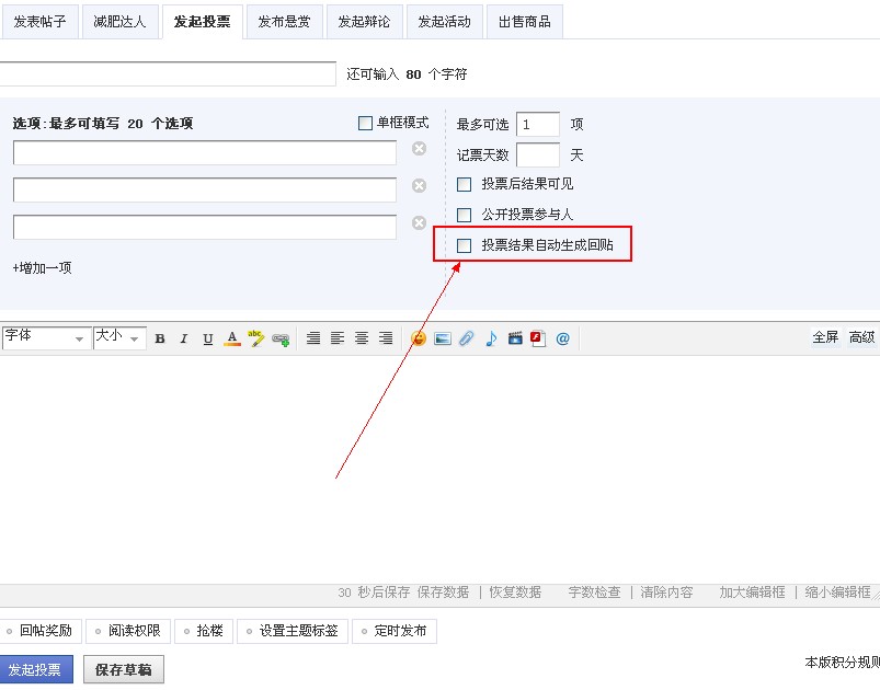 * 在post_newthread.php文件向c_reply_poll表记录用户选择自动回复功能