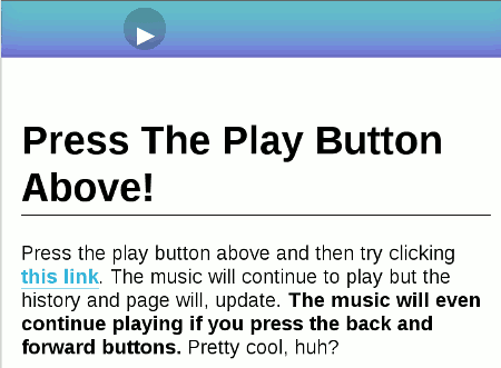 所谓 History API,指的是不刷新页面的情况下,改变浏览器地址栏显示的URL(准确说,是改变网页的当前状态)。这里有一个例子,你点击上方的按钮,开始播放音乐。然后,再点击下面的链接,看看发生了什么事?