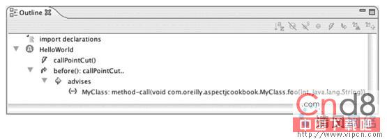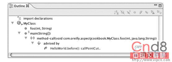 图2-4 用Outline view查看应用了特定建议的类或aspect