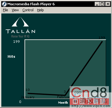 世界上有很多Flash开发者。因而Macromedia的网站上有很多免费的ActionScript库可用。有几个库可用来以图形格式绘制数据数组。通过使用这种方法,可以创建一个简单的应用来绘制应用服务器产生的XML文档,如下图所示: