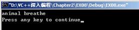 现在我们在animal类的breathe()方法前面加上一个virtual关键字,结果如例2-17所示。
