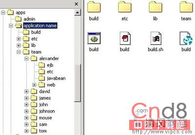 2. 应用程序开发目录结构没有src目录,但多了一个team目录,此目录存放所有程序员的classes和Jsp代码。