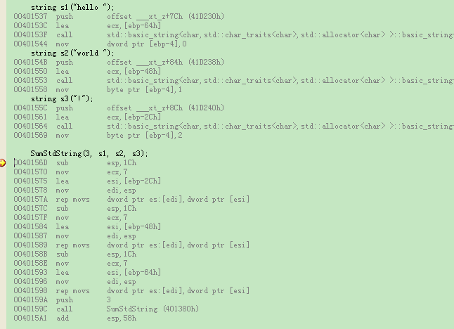 另外,可以看到最后在调用sumStdString后,由add esp, 58h来外部清栈。