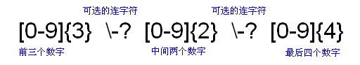 例如,在前面社会安全号码的例子中,所有出现“[0-9]”的地方我们都可以使用“\d”。修改后的正则表达式如图七所示: