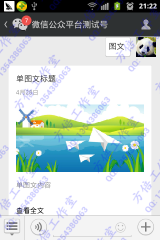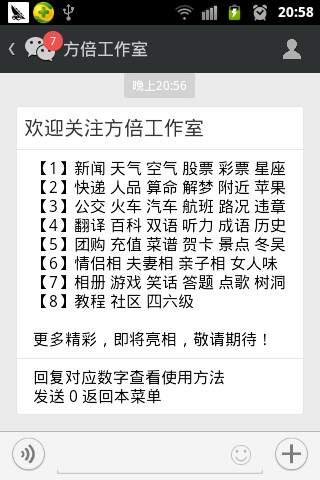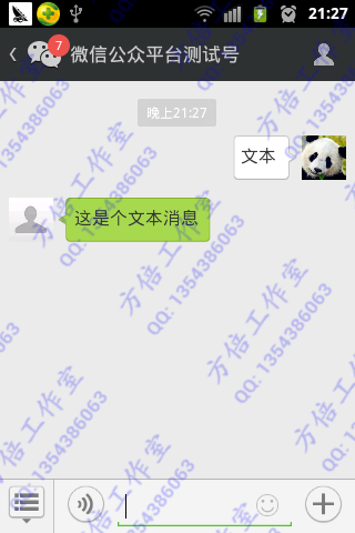 在你的公众账号输入相应的命令,实现效果类似如下所示: