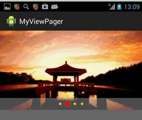 而且,在用自定义视图封装ViewPager时,出现了一个问题,就是ViewPager的所有页不能全部显示的问题,不知道是因为这个问题太简单还是什么其它原因,在网上并没有搜到这个问题的解决方法(事实上连提问的人都没有……),困扰了我半个多星期,终于解决,这一点在正文里会介绍,先来贴一下效果图: