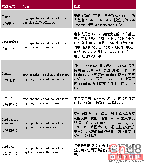 有关集群元素的具体说明参见Tomcat 5.5的集群文档。