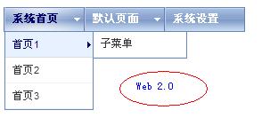 通过上面一步步的开发,现在终于可以一览RadMenu的风采了。通过上面建立的母版页建立一内容页,直接运行内容页就可以看到效果了。示例中我使用了三种皮肤:Web2.0,WebBlue和Vista,下面是此三种皮肤的运行截图: