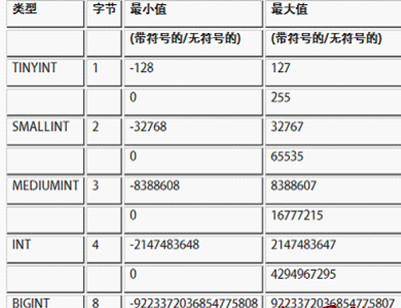 我们先来看看整数型数据类型的宽度范围