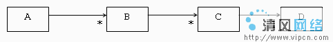 我们首先从最深入的改进开始介绍。在JDO1.0中,查询结果总是你所指定的类的实例集合。考虑下面的UML类图,它表达了A、B、C、D四个类及之间的关系:
