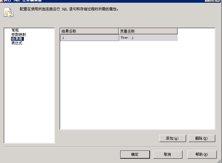 在结果结果集中 输入如下结果名称 并指定到变量 j
