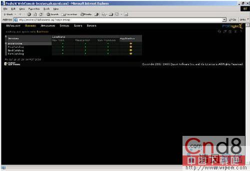 应用列显示了应用基础架构的整体状态,即与具体业务过程相关的物理层次和应用组件的状态。假如应用呈黄色,表明其中一个服务器或组成应用基础架构的应用组件正处于警告状态中。
